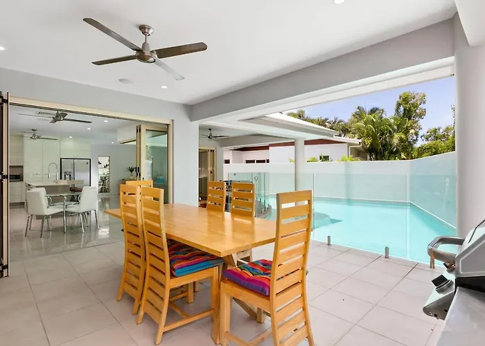 La Villa Harbour Drive Luxury In Bluewater Estate Yorkeys Knob se encuentra a unos 4 km del Parque Cultural Aborigen Tjapukai e invita a los huéspedes a disfrutar de un patio.